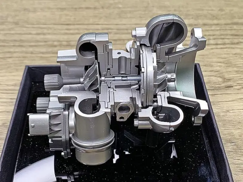 ટર્બોચાર્જરમાં બે મુખ્ય ભાગ હોય છે: ટર્બાઇન અને કોમ્પ્રેસર.